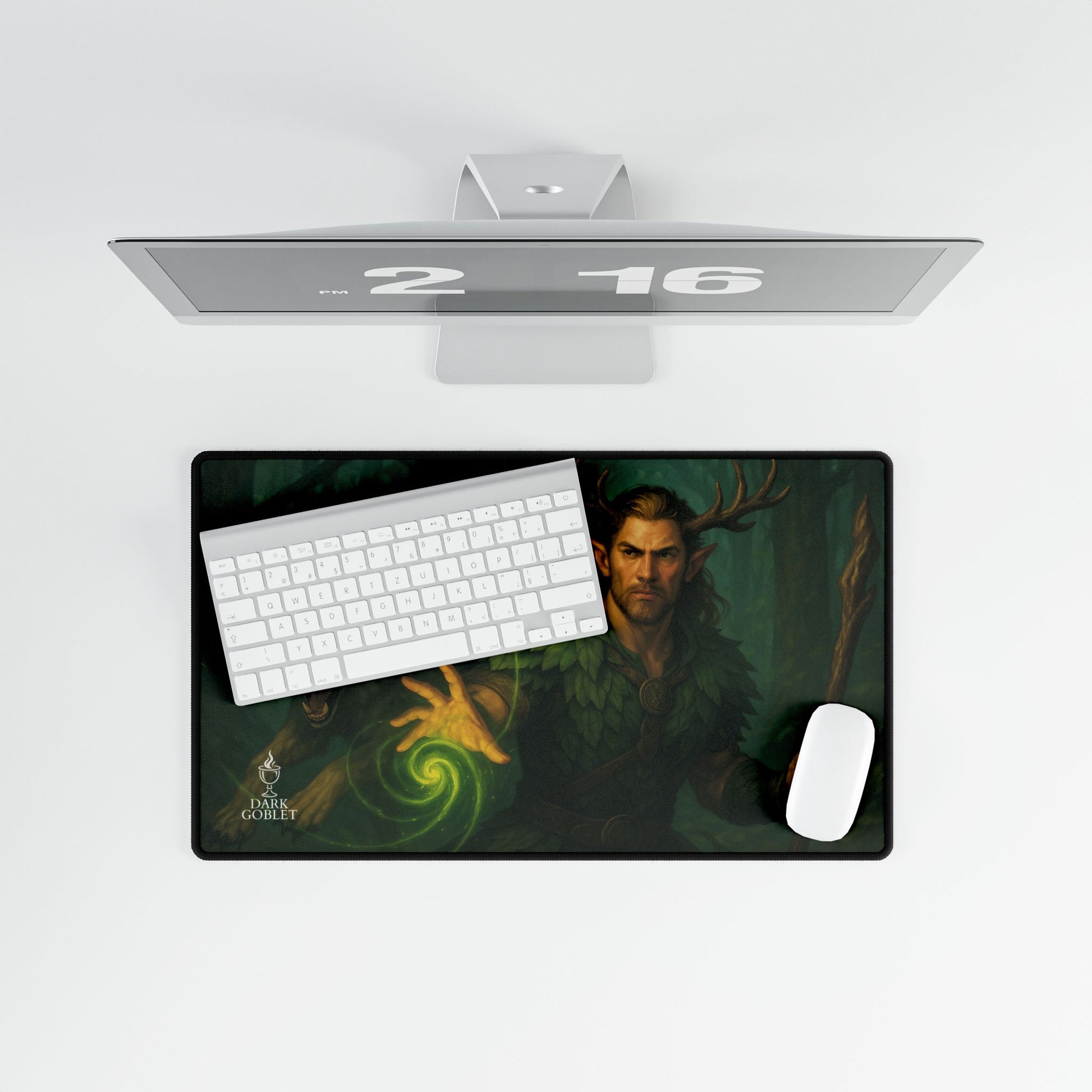Druid Fantasy Desk Mat — Fantasy Forest Gaming Mousepad with 'The Druid' Artwork Male